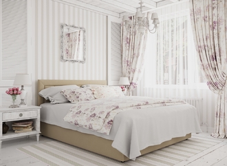 Фактура обивочного материала подбирается дизайнерами с учетом технологических и стилевых особенностей кровати.