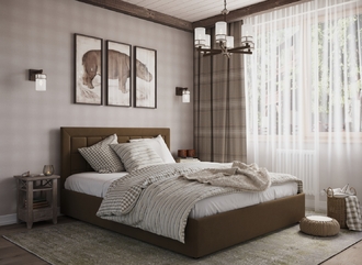 Стежка помещена в центр изголовья и обрамлена, словно картина. Объемные царги становятся гармоничным дополнением образа и завершают цельную фигуру кровати.