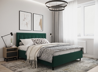 Стежка помещена в центр изголовья и обрамлена, словно картина. Объемные царги становятся гармоничным дополнением образа и завершают цельную фигуру кровати.