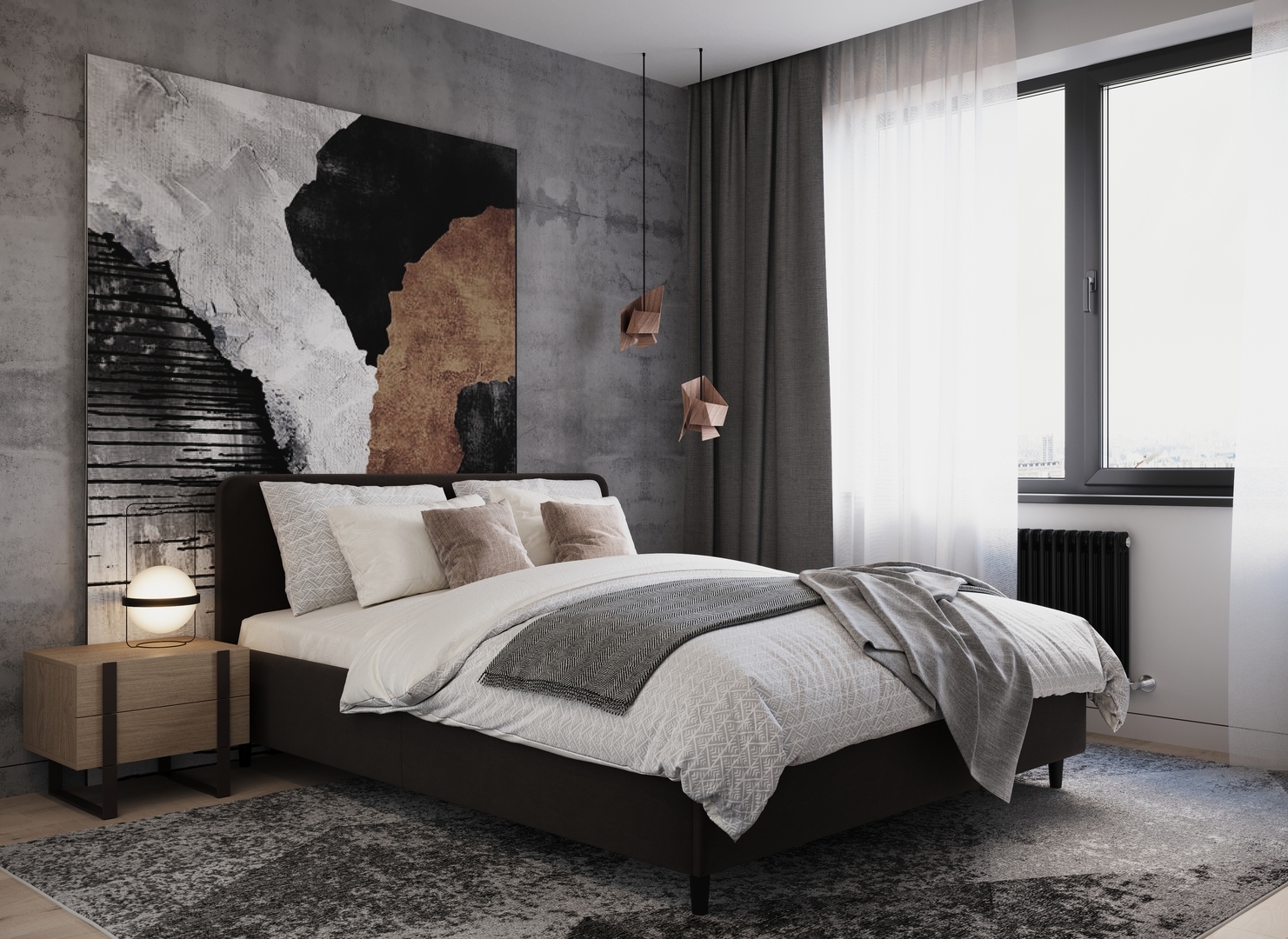 Создать гармоничный интерьер и завершить образ спальни помогут дополнительные аксессуары, например: тумбы, банкетки, подушки.